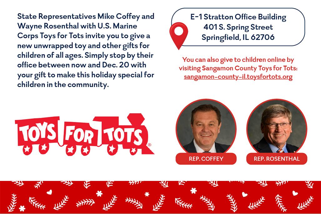 Springfield, IL…State Representatives Mike Coffey (R-Springfield) and Wayne Rosenthal (R-Morrisonville) are hosting a holiday drive to help children in the community. From now until December 20th, new unwrapped toys will…